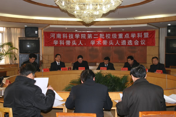 纪委书记张民校宣布了校级重点学科暨重点学科学科带头人、学术带头人遴选的工作守则,校长助理、研究生处处长李敬玺教授传达了《河南科技学院重点学科学科带头人、学术带头人遴选办法》(试行)的文件精神和11月24日校学术委员会主任会议关于重点学科暨重点学科学科带头人、学术带头人遴选工作的会议纪要精神,研究生处副处长郜庆炉教授就各院(系、所)重点学科暨重点学科学科带头人、学术带头人申报情况及研究生处资格审查情况等进行了说明。申报参加遴选学科所在的16个院(系、所)采取多媒体汇报方式介绍了本院(系、所)参选重点学科及重点学科学科带头人、学术带头人申报情况。参会的学术委员就学科资源整合、联合申报等相关问题进行了异议提问和讨论。