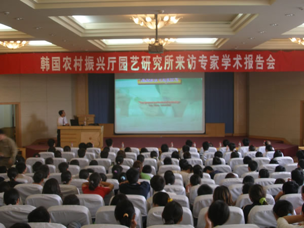 10月11日下午,Lee,Han Cheol、Kwon,Joon Kook和张成浩三位博士在图教201分别为我院师生作了“韩国园艺发展的现状及园艺业在韩国农村经济发展中的作用”、“韩国园艺教育,特别是高等教育的发展情况”和“韩国园艺科学研究的现状及发展趋势”的学术报告,并进行现场提问答疑,收到了很好的效果,报告会由园林学院副院长刘会超主持。