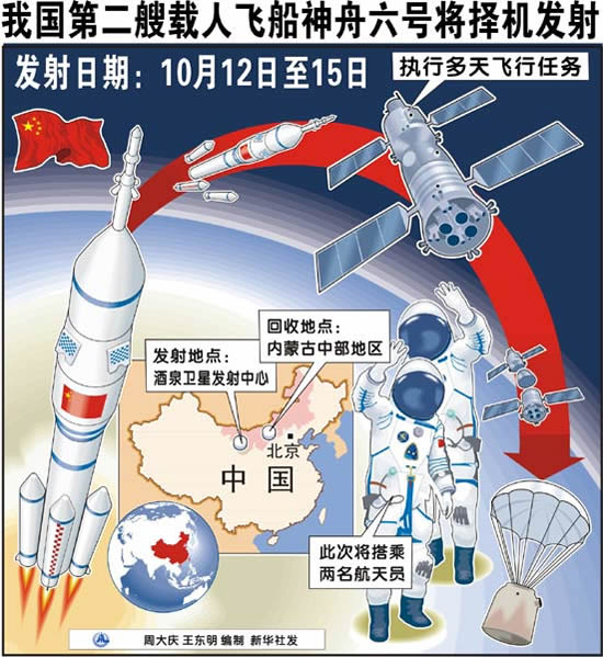我国第二艘载人飞船神舟六号将择机发射图表
