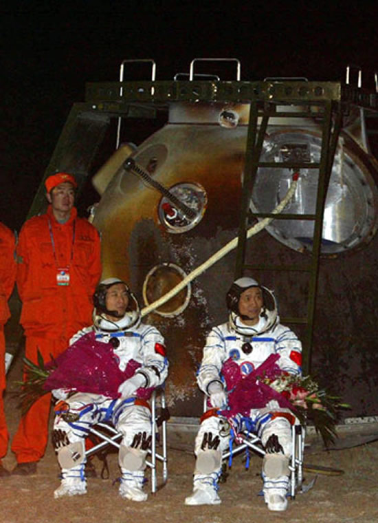 10月17日4时33分,神舟六号返回舱在内蒙古四子王旗中部草原成功着陆,航天员费俊龙、聂海胜平安返回。