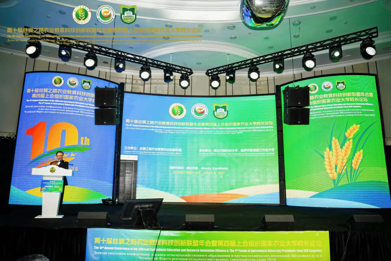 我校作为一所以农业为优势学科的高等院校,在农业领域有着深厚的积累和显著的优势。7月6日至8日,我校教师受邀参加了在哈萨克斯坦阿拉木图市举办的第10届丝绸之路农业教育科技创新联盟年会。此次会议以“深化丝路科教合作,共促未来农业发展”为主题,来自中国、哈萨克斯坦、俄罗斯等10个国家的高校、科研机构及知名企业的110余名代表齐聚阿拉木图,围绕农业教育现代化、智慧农业技术、粮食安全与生态保护等关键领域,探索更广阔的合作空间和更大范围、更高水平、更深层次的合作关系,共谋现代农业高等教育科技创新崭新篇章。