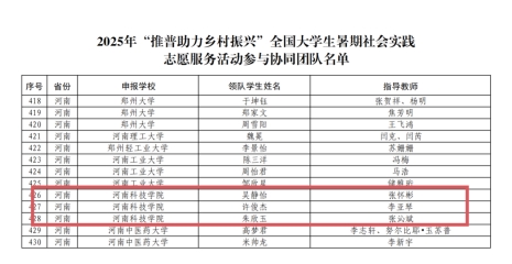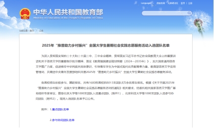 近日,教育部公布了 2025 年 “推普助力乡村振兴” 全国大学生暑期社会实践志愿服务活动入选团队名单,我校经济与管理学院 “语润新乡” 乡村振兴推普队、软件学院 “E 青春” 青年宣讲实践团、农学院 “禾言新丰” 实践团成功入选全国协同团队。