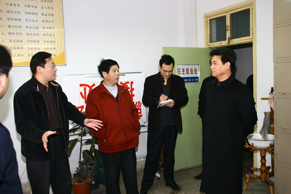 3月5日上午,新学期开学第一天,校党政领导严全治、齐毅、张玉珍、郭海波、梁赖、王文鹏、张民校等由党委书记、校长严全治和党委副书记齐毅分别带队,在党委办公室、校长办公室有关负责人陪同下,到组织部、宣传部、人事处、教务处、生命科技学院、机电学院、经管学院及本科教学评建办公室等各职能部门和教学院系进行调研慰问,每到一处,严全治书记、齐毅副书记及其他校领导都与单位负责人和基层工作人员热情握手并进行亲切交谈,他们对过去一年为我校改革发展付出辛勤努力的广大教职员工表示慰问和感谢,对各部门在工作中存在的实际困难和问题进行了现场调研,对新的一年各项工作提出了希望和要求。在评建办公室,严书记同评建办全体工作人员进行了深入交流,他指出,本科教学评建工作是我校2007年工作的重中之重,一切工作都要以评建工作为中心、服从服务于此项工作,他希望评建办要明确目标、强化监督、讲求奉献,以高度的责任感和使命感,力争圆满完成此项工作任务。