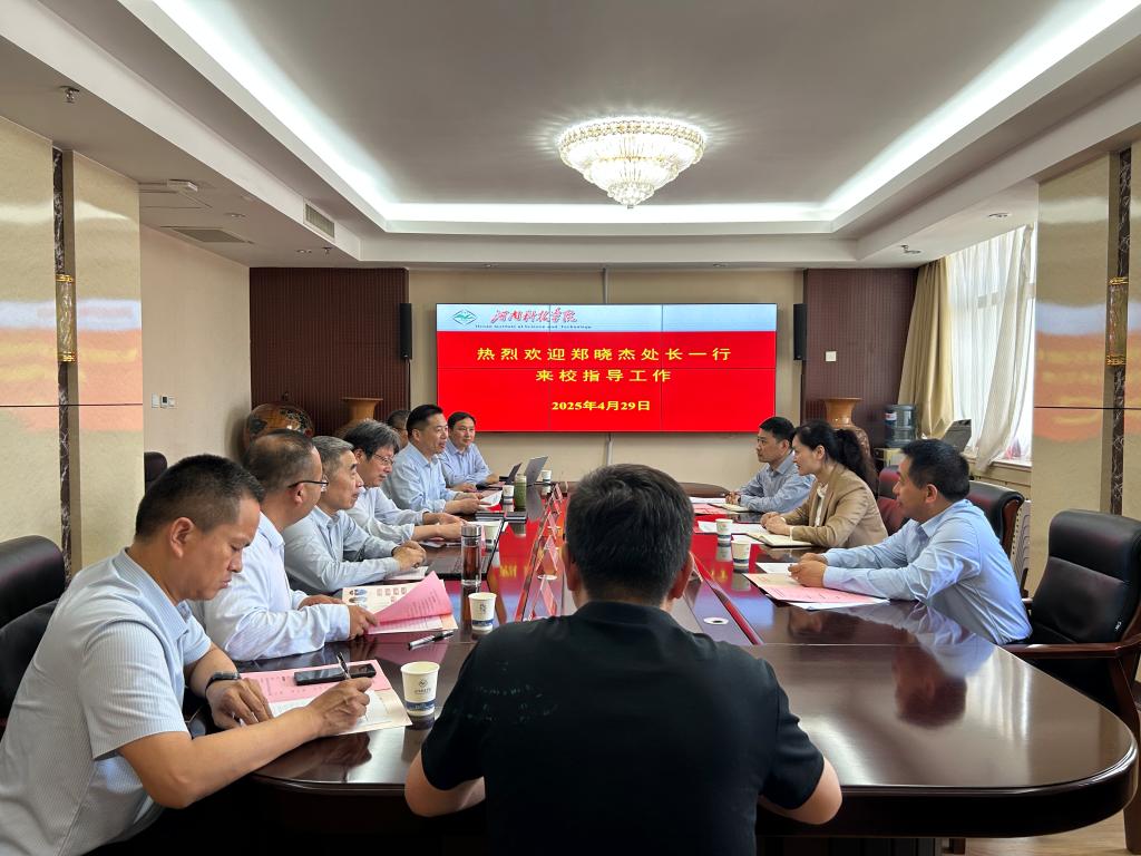 阚云超对郑晓杰一行来访表示欢迎,对省农业农村厅给予科研发展的持续关注和支持表示感谢,并简要介绍了我校的历史沿革、学科特色及突出业绩。科技处负责人就国家主粮作物智慧绿色高效种植技术集成及应用示范基地建设情况进行汇报。