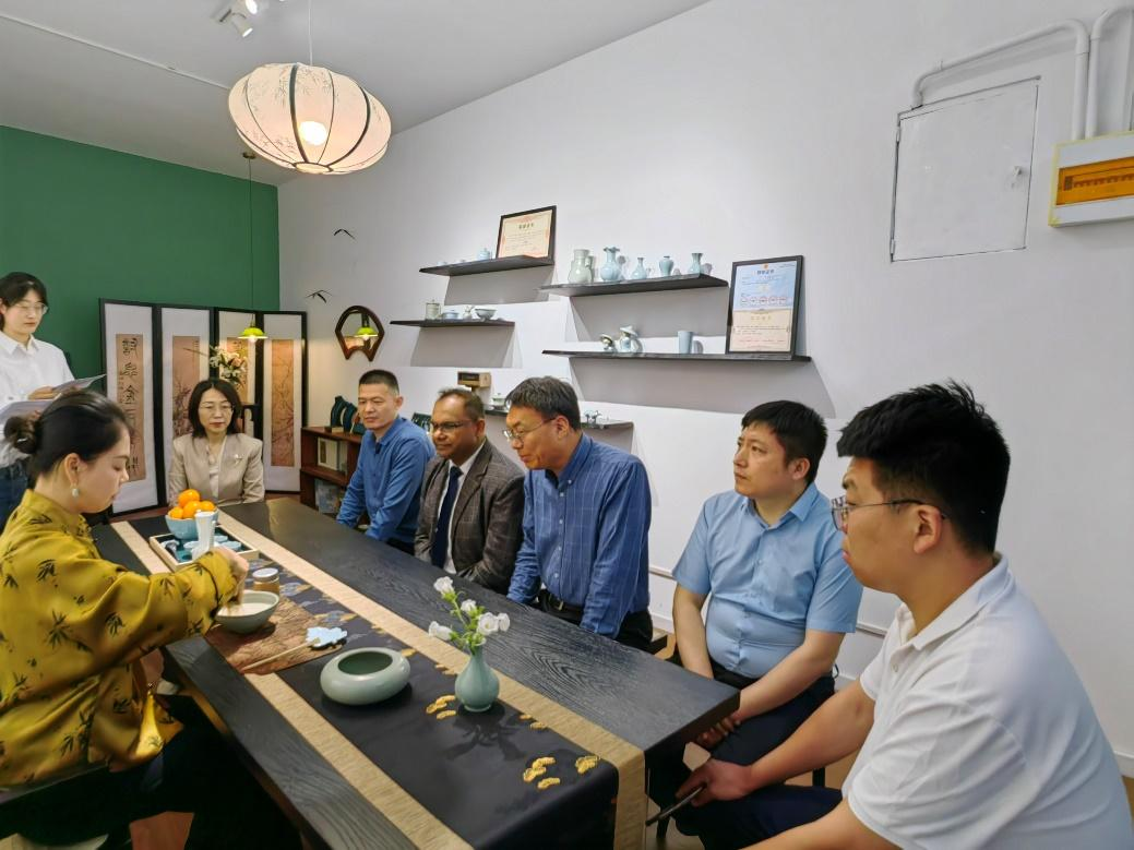会后,我校非物质文化遗产汝瓷烧制技艺代表性传承人张义萌老师为 Wishwajith 教授展示了汝瓷非遗文化,并进行了宋代点茶技艺展演。Wishwajith 教授还参观了我校校史馆、非遗文化作品展和百泉现代农业研究院,与我校专家学者就“一带一路”国际联合实验室建设等合作事宜进行了深入探讨。Wishwajith教授对我校深厚的文化底蕴和科研实力给予高度评价,表示将积极推动瓦扬巴大学与我校在人才培养、科研合作和文化交流等领域的深入合作。