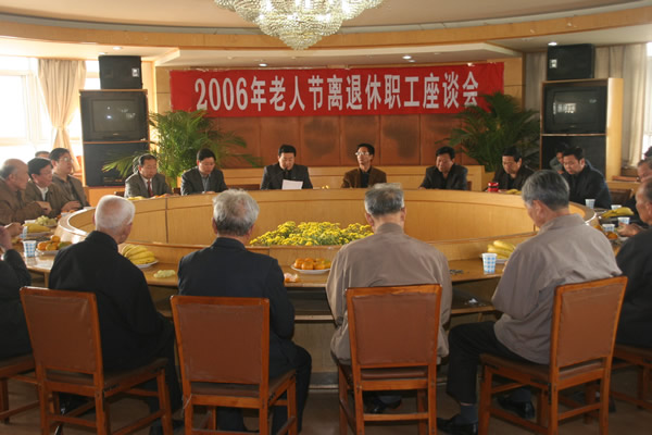 10月26日上午,我校2006年老人节离退休职工座谈会在行政楼三楼报告厅召开。党委副书记郭海波,副院长王文鹏、刘兴友,工会主席郭海山等出席座谈会,有关职能部门负责人及离退休职工代表共90余人参加座谈会。座谈会由党委副书记郭海波主持。
