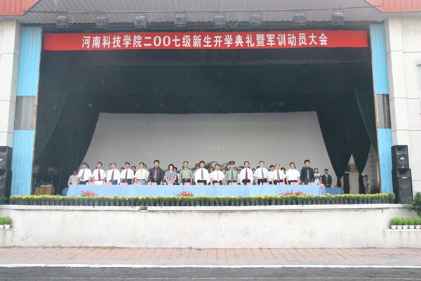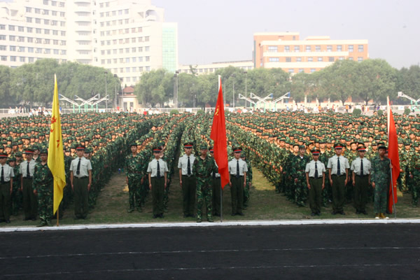 秋高气爽、丹桂飘香,9月10日上午,我校2007级新生开学典礼暨军训动员大会在西操场隆重举行,校党政领导严全治、王清连、张玉珍、郭海波、梁赖、王文鹏、刘兴友、窦玉玺、张民校、郭海山及中国人民解放军71697部队政治处主任谢天平、71697部队带队教官赵凯营等出席典礼,有关职能部门和院系负责人及2007级新生共5000余人参加开学典礼。典礼由校长办公室主任陈自录主持。