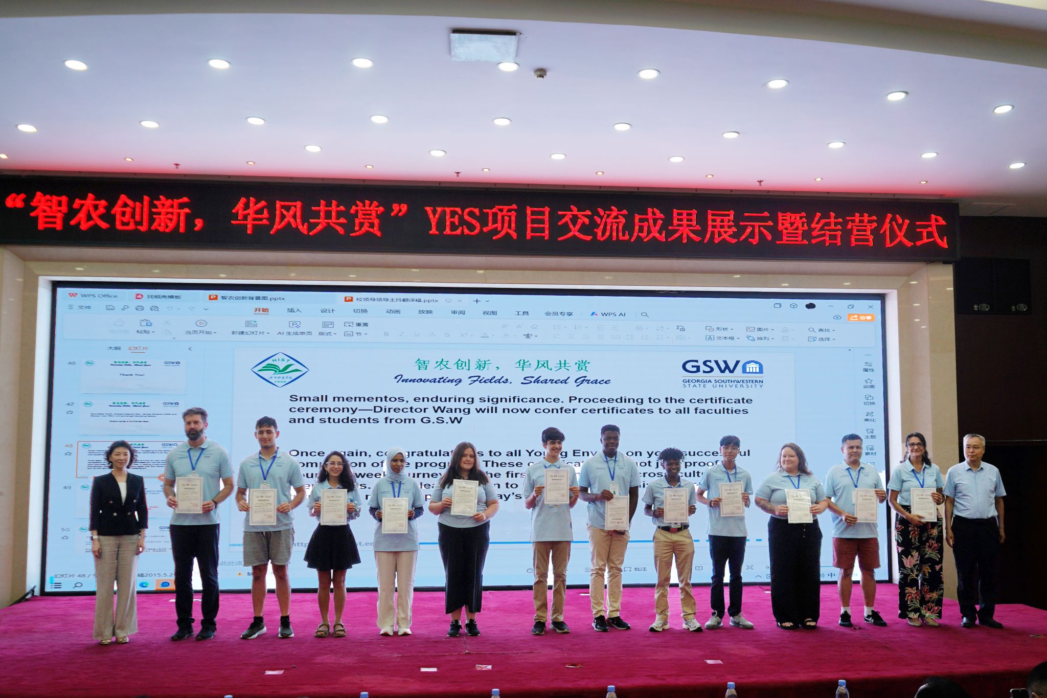 6月23日,河南科技学院与美国佐治亚西南州立大学(GSW)合作的青年使者交流学习计划(YES)项目“智农创新 华风共赏”成果展示暨结营仪式成功举行。河南省教育厅对外合作与交流处处长王华星、校党委书记宋亚伟出席并致辞,副校长刘全永主持仪式。GSW约尔丹诺娃教授等嘉宾及两校师生代表百余人参与。