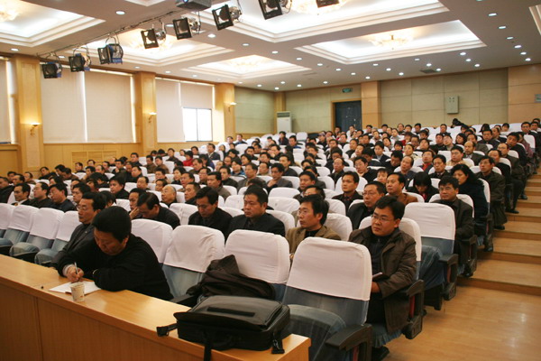 11月29日下午,我校在图书馆二楼报告厅召开学习贯彻党的十七大精神专题报告会,党委书记严全治应邀作了题为《贯彻落实科学发展观 全面推进学校事业又好又快发展》的首场报告。党委副书记张玉珍主持报告会。在校的党政领导梁赖、王文鹏、张民校和全体处级干部、教授、博士及机关科级以上干部等350余人参加报告会。