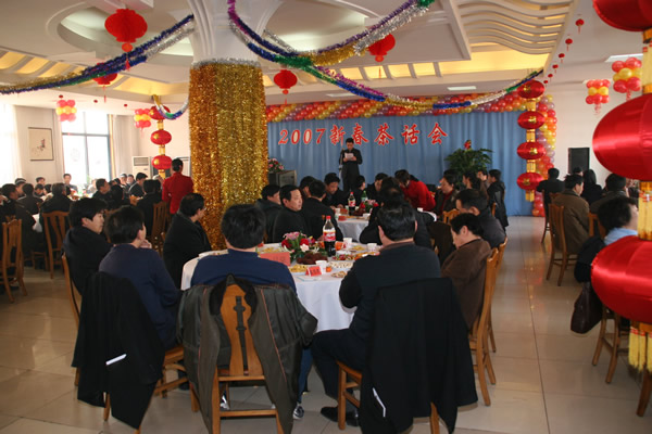 1月31日下午,我校学术交流中心二楼大厅被装扮得温馨祥和、喜气洋洋,我校2007年新春茶话会在这里隆重举行,校党政领导严全治、齐毅、张玉珍、郭海波、梁赖、王文鹏、刘兴友、张民校、郭海山等出席茶话会,全体处级干部、各院系各单位教职工代表,离退休老教工老干部、各民主党派人士代表共110余人参加茶话会。
