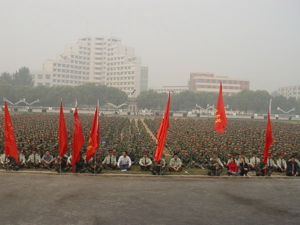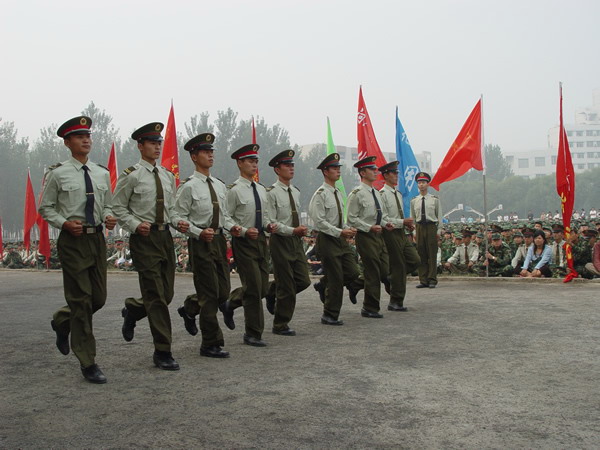 动员大会在雄壮的国歌和激越的校歌声中开幕,院长助理梅宪宾宣布军训团成立。党委副书记郭海波作军训动员讲话。中国人民解放军71697部队首长谢国亭在会上讲话。