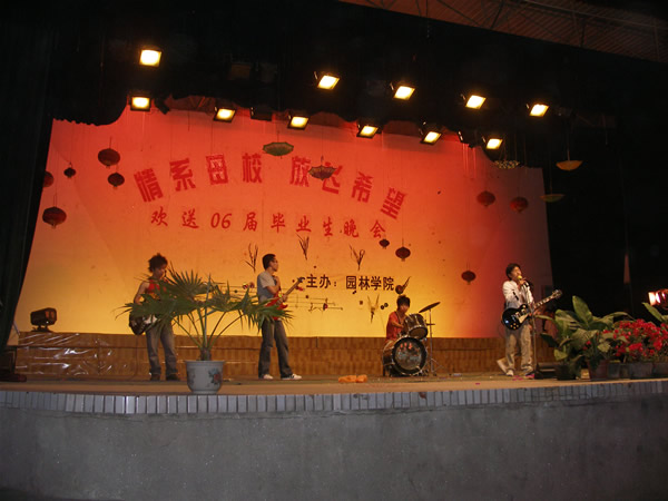 6月3日晚,由园林学院主办的以“情系母校,放飞梦想”为主题的欢送06届毕业生大型文艺晚会在操场大舞台拉开了帷幕。