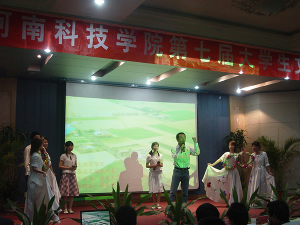秀色满园春来早,生机盎然百花妍。4月12日晚,在图书馆二楼报告厅,校团委隆重举行“河南科技学院第七届大学生文化艺术节开幕式暨诗歌剧汇报演出”。开幕式由校团委组织部长徐小玉主持。学院党委副书记郭海波出席开幕式并作重要讲话,共青团新乡市委书记李跃勇应邀出席开幕式并致词。