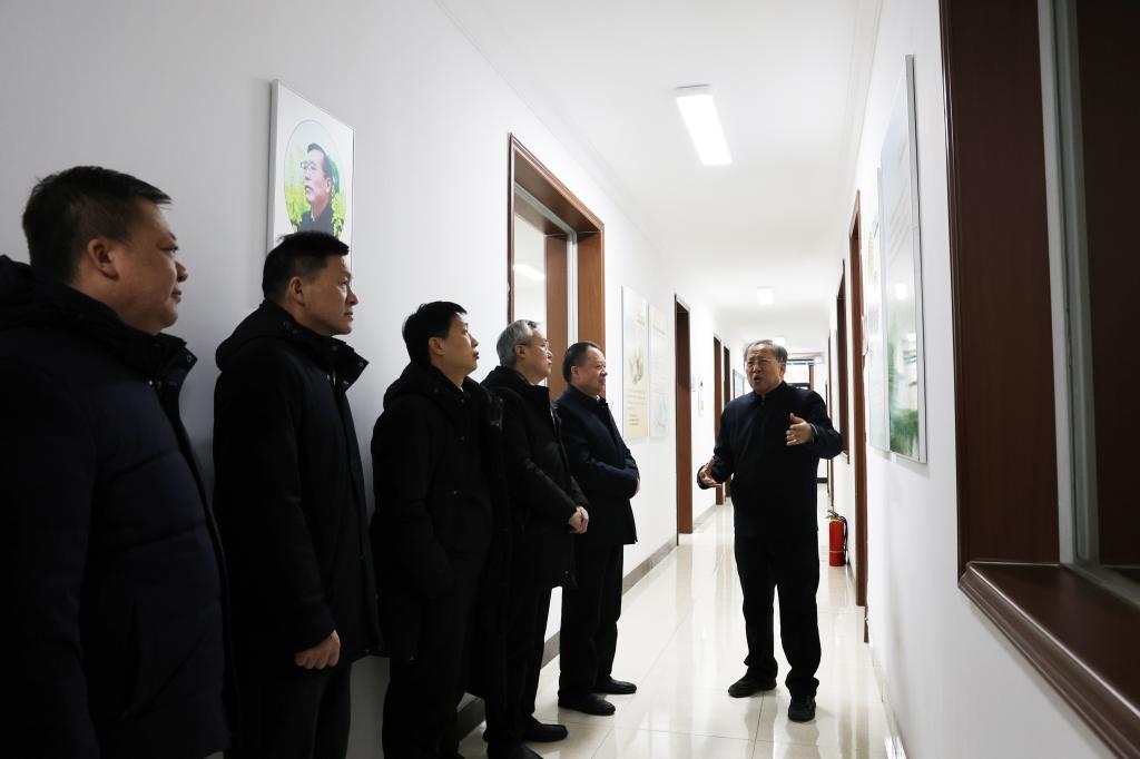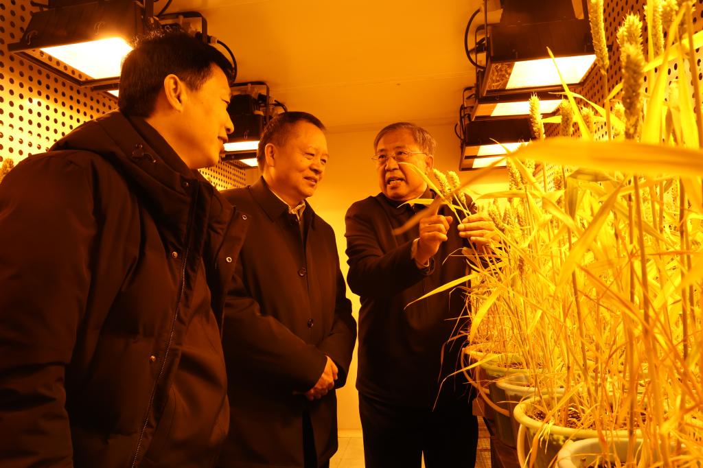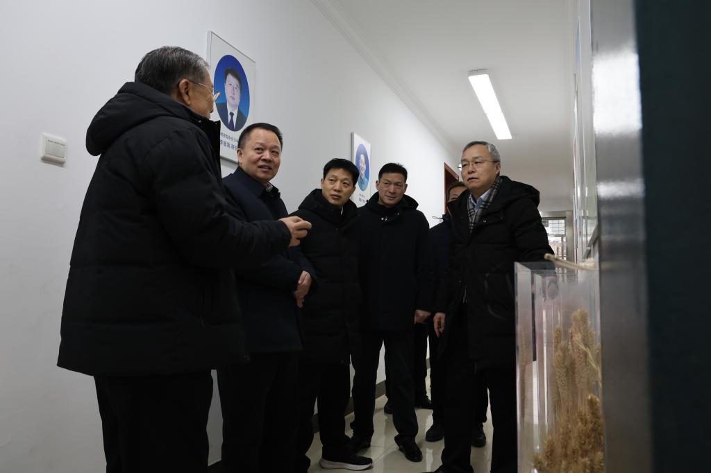 在小麦研究中心,马丰收向茹振钢教授表达亲切问候和新春祝福,认真听取了茹振钢教授小麦育种研究最新成果介绍。他充分肯定了学校在小麦育种科研创新上取得的成绩,希望茹振钢教授继续发扬科学家精神,在新征程中结合学科发展前沿为我省经济社会发展作出新的更大贡献。