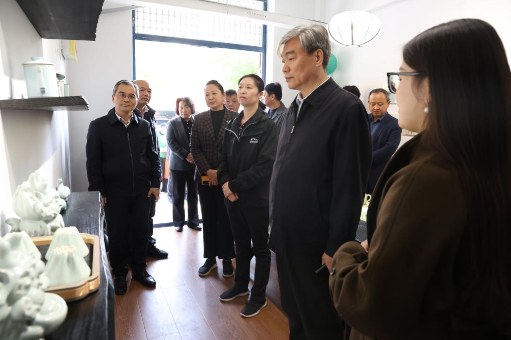 11月7日下午,新乡市政协主席王新军、副市长陈颖颖、市政协副主席姬泓一行,在校党委副书记王庆兵的陪同下,对我校文创工作室(美术与设计学院文创陈列室、刻字工作室)、工艺美术专业文创设计展以及服装学院“中原服饰文化馆”进行了实地考察。