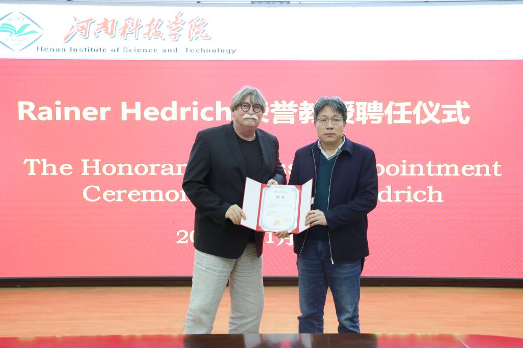 聘任仪式上,Rainer Hedrich教授表达了对河南科技学院的感谢与期待,并表示将积极推动与学校的学术交流与科研合作,为植物科学的发展贡献更多力量。