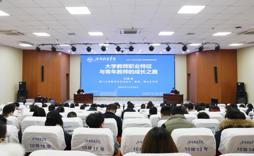 12月26日上午,我校邀请厦门大学教育研究院院长、中国学位与研究生教育学会研究生教育专业委员会副理事长别敦荣教授在图书馆一楼报告厅举行新入职教师专题报告。报告会由副校长胡铁柱主持。2023-2024学年新入职教师120余人参加了报告会。