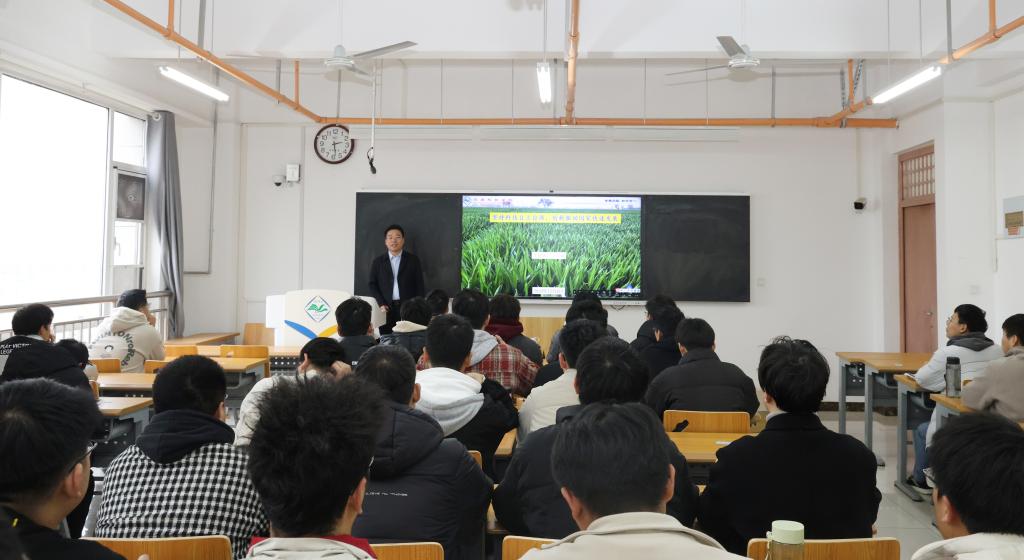 12月3日上午,副校长王洪亮在9号教学楼408教室为农学(中外)专业学生讲授专题思政课。