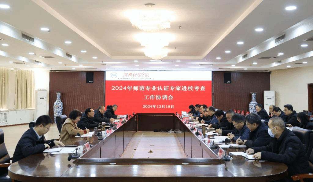 为进一步推动师范类专业认证建设,12月18日上午,我校在办公楼206会议室召开2024年师范类专业认证专家进校考查工作协调会,副校长刘全永出席会议并讲话,党委宣传部、校长办公室、校团委、人事处、教务处、学生处、财务处、资产处、保卫处、实验室与设备管理处、招生办公室、图书馆、网络与信息化管理中心、后勤服务中心等单位负责人,三个认证专业所在学院党委书记、院长、教学副院长参加会议。会议由教学质量监控中心负责人主持。
