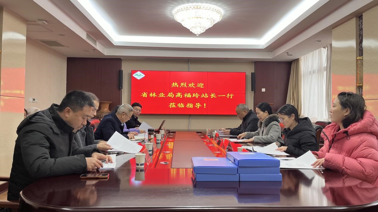 马金友致欢迎词,对省林业局长期以来对学校的关心和支持表示感谢。河南科技学院作为项目主持单位,将在人员、基地等方面加大支持力度,确保项目顺利开展。经过对我校林草种质资源库现场考察、听取项目组汇报后,高福玲对两个项目完成情况表示肯定并提出了中肯建议。