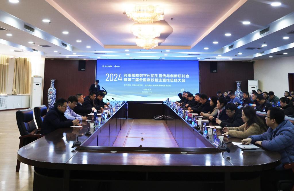 12月26日,由我校主办、校派教育科技有限公司承办的“河南高校数字化招生宣传与创新研讨会暨第二届全国招生宣传总结大会”在办公楼206会议室召开。副校长胡铁柱出席会议。我校招生办公室、甘肃省教育考试院、安徽省濉溪县考试管理中心、齐鲁工业大学、郑州大学、河南大学、河南农业大学、河南师范大学、河南工业大学、华北水利水电大学、信阳师范大学等全国40余家单位和高校招生工作负责人参加会议。