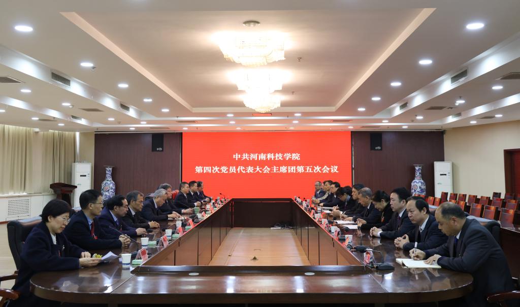 3月19日上午9:40,中国共产党河南科技学院第四次党员代表大会主席团第五次会议在办公楼206会议室举行。会议由校党委书记宋亚伟主持。