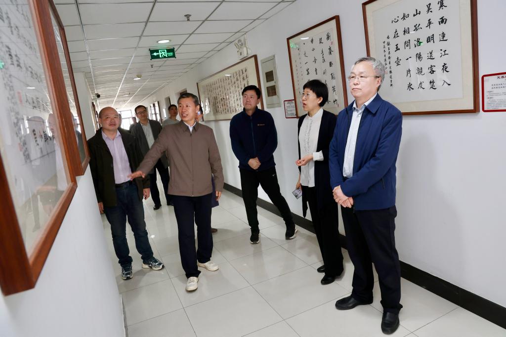 4月7日,校党委书记宋亚伟、纪委书记王莉华参观办公楼7楼“廉政文化廊--诗词篇”。校纪委监察专员办公室综合室、美术与设计学院负责人及工作人员陪同参观。