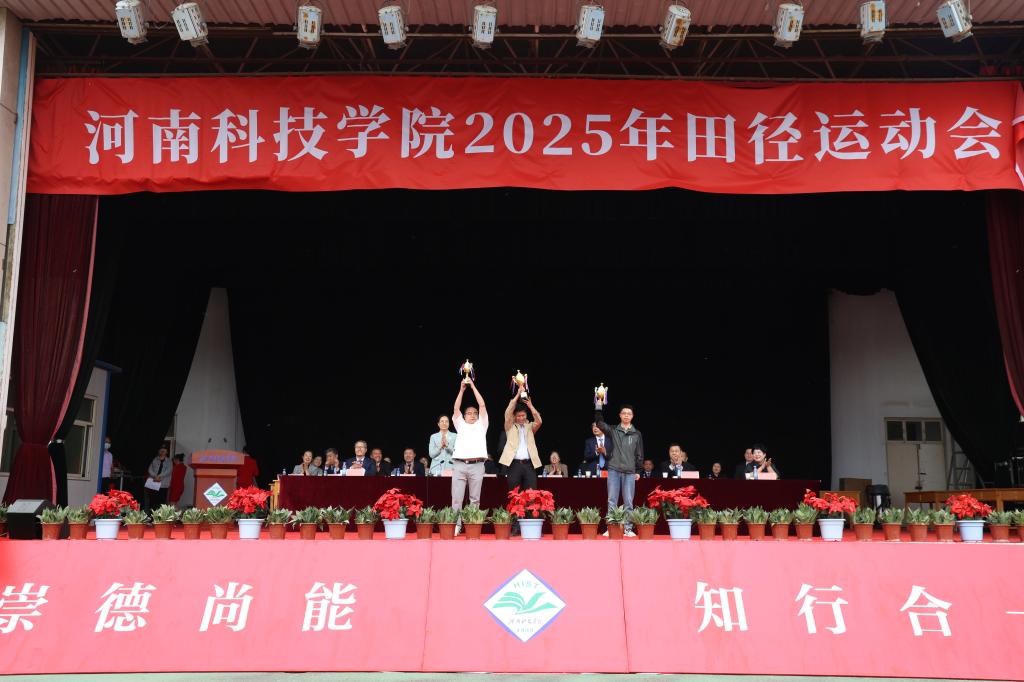4月18日下午,我校2025年田径运动会闭幕式在西校区运动场举行。校党委副书记、工会主席姚刚、副校长刘全永出席闭幕式。