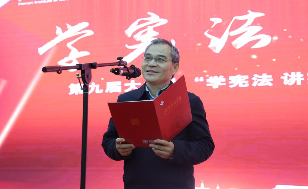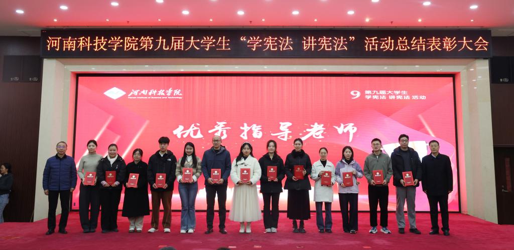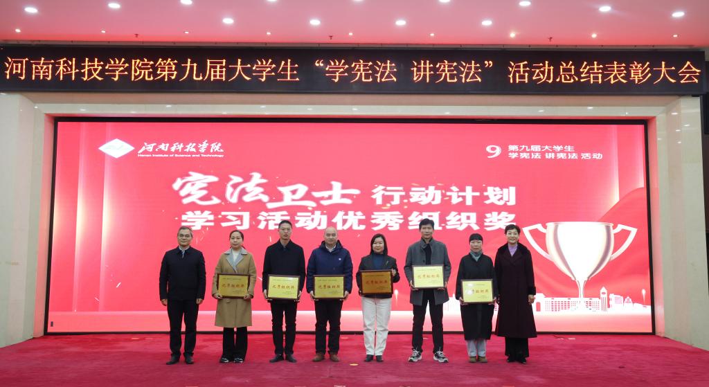 12月4日,在第十一个国家宪法日之际,第九届大学生“学宪法 讲宪法”活动总结表彰大会在办公楼308报告厅举行。校党委副书记王庆兵、副校长王洪亮,新乡市委依法治市办委员、市司法局党委委员、政治部主任李爱萍出席大会,学校依法治校工作领导小组成员单位负责人及200余名师生代表参加大会。