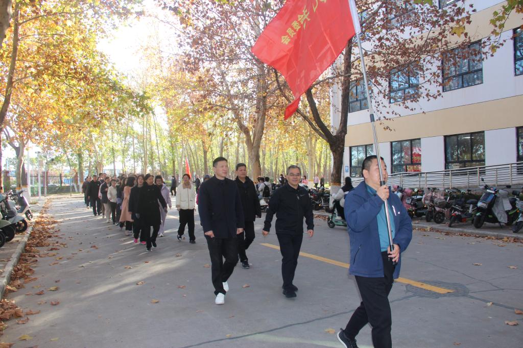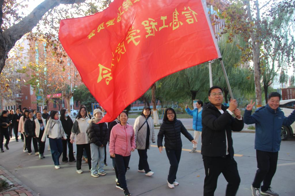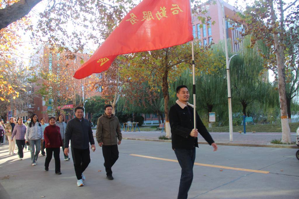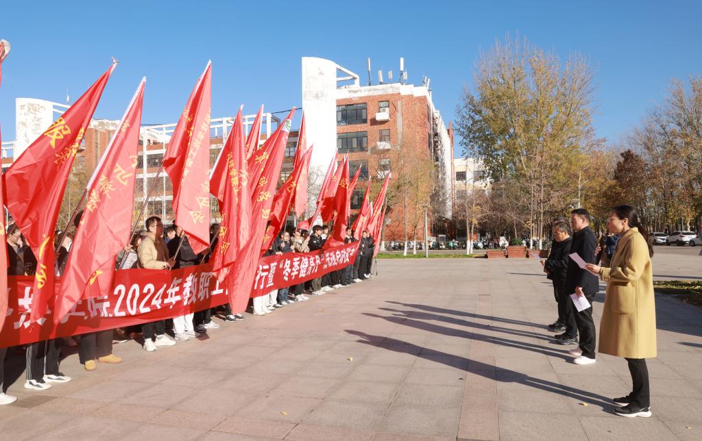 王庆兵宣布2024年教职工冬季健身月活动启动。随着发令枪响起,参加活动的全体教职工在校园中开始了健步行运动。