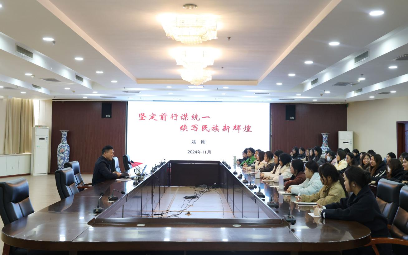 姚刚以《坚定前行谋统一 续写民族新辉煌》为题,分别从台湾问题的由来及演变、解决台湾问题的“时势义”、新时代解决台湾问题的根本遵循与总体方略等三个方面,详细剖析了台湾问题产生的历史脉络和演变过程,深入讲解了在国内国际两个大局都发生深刻、复杂变化的时代背景下,解决台湾问题、推进祖国完全统一的总体情况,深刻阐释了怎样贯彻新时代党解决台湾问题的根本遵循,把握两岸关系主导权和主动权,推进完成祖国统一大业的总体方略。