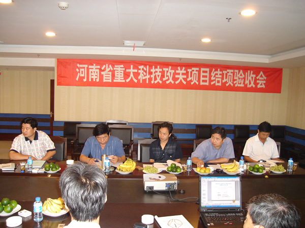 8月23日,河南省科技厅组织有关专家对校长王清连教授主持的河南省重大科技攻关项目“转基因多抗系陆地棉优质专用纤维特色新品种选育”进行了验收。验收会由省科技厅农村处王炜副处长主持。专家组认真听取了课题组工作汇报,对照研究计划合同一一进行了质疑和评价,并认真审阅相关证明材料。专家组一行5人在学院科技处和课题组陪同下,实地考察了棉花试验田,详细察看了棉花生长表现。通过汇报和实地考察,专家组认为,该项目组织管理规范,经费使用合理,圆满完成了合同计划任务,同意通过验收,并建议进一步加大项目成果转化力度,为提高我国棉花整体竞争力,确保我国“棉花安全”做出贡献。(科技处)