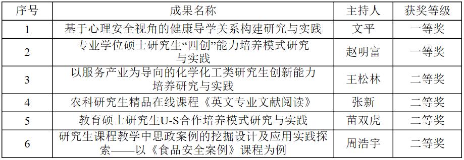 我校主持获得2024年河南省高等教育研究生教学成果奖名单