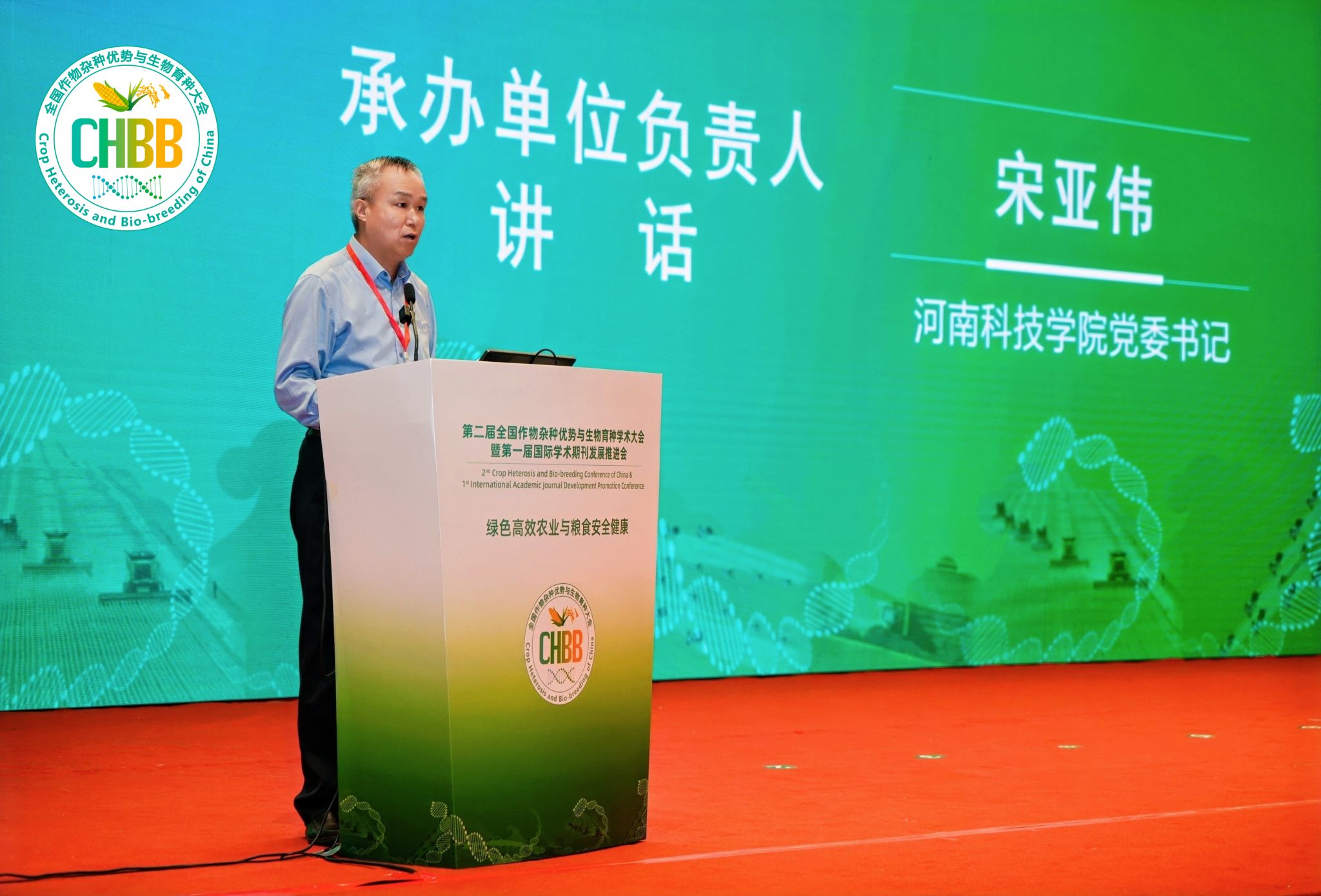 会上,校党委书记宋亚伟代表学校致辞,他向各位参会专家表示最热烈的欢迎和最诚挚的感谢!并表示我校作为联合承办方之一,将竭诚为各位嘉宾提供优质的服务和保障,确保本次大会的顺利进行。宋亚伟简要介绍了我校的发展历史、发展现状和近年来在作物新品种尤其是小麦新品种选育、推广应用等保障国家粮食安全方面取得的成绩。同时,他指出“河南科技学院”作为典型的地方院校,其发展离不开各位专家的指导,希望以此次大会为契机,加强彼此之间的合作与交流,为提升各类作物的生产水平、保障粮食安全、促进农业可持续发展、实现农业现代化、推进农业强国建设贡献智慧和力量!