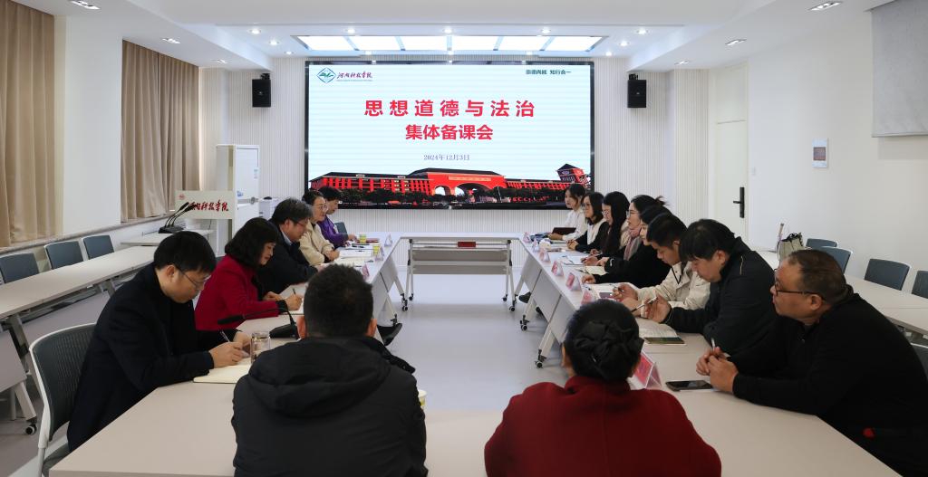 为深入学习贯彻习近平总书记关于学校思政课建设的重要指示和党的二十届三中全会精神,进一步提升思政课教学质量、促进思政课程内涵式发展,12月3日上午,马克思主义学院思想道德与法治教研室在0号楼809室举行集体备课会。校长、思想道德与法治教研室联点校领导阚云超出席备课会,马克思主义学院领导班子成员及思想道德与法治教研室全体教师参加会议。