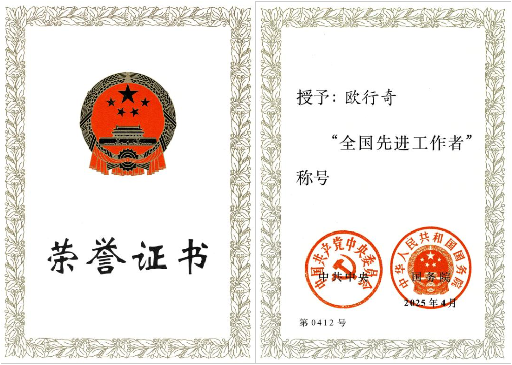 4月28日上午,庆祝中华全国总工会成立100周年暨全国劳动模范和先进工作者表彰大会在北京举行。我校欧行奇教授荣获“全国先进工作者”荣誉称号。