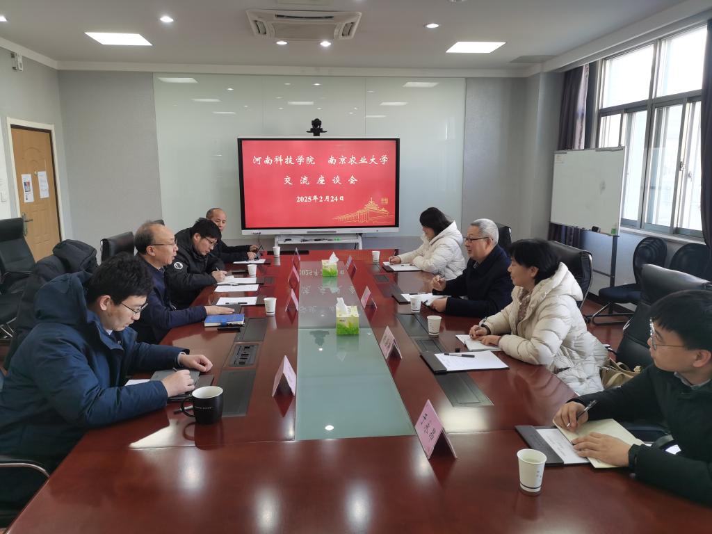 2月24日,副校长马金友带队赴南京农业大学调研学科建设和研究生培养工作,农学院负责人及相关人员陪同调研。南京农业大学副校长丁艳锋,农学院、校长办公室等单位负责人参加座谈。