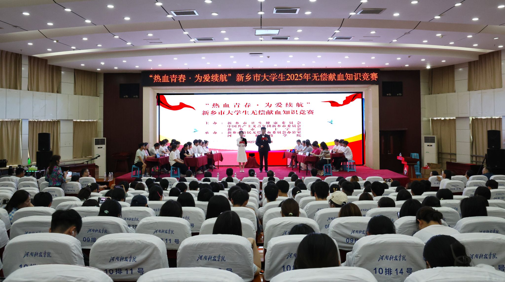 此次竞赛,由新乡市卫生健康委员会、中国共产主义青年团新乡市委员会、新乡市红十字会主办,新乡市公民无偿献血委员会办公室、河南科技学院承办。竞赛的举办,不仅为我校师生深入普及无偿献血知识,也大力弘扬“奉献、友爱、互助、进步”的志愿服务精神,着力引导科院学子在服务奉献中挺膺担当。