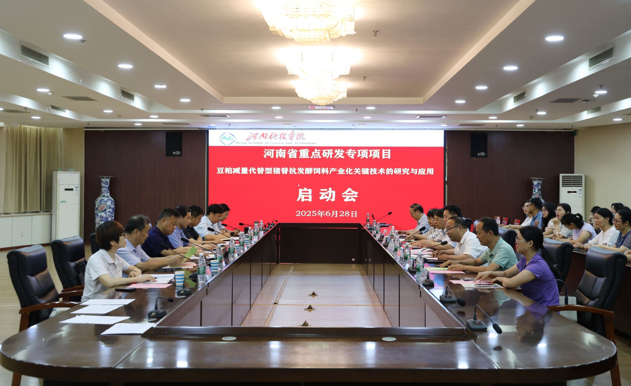 6月28日上午,由我校牵头承担的2025年度河南省重点研发专项“豆粕减量替代型猪替抗发酵饲料产业化关键技术的研究与应用”项目启动会在行政楼206会议室召开。中国农业大学呙于明教授、西北农林科技大学任周正教授、河南牧业经济学院席磊教授、河南农业大学魏战勇教授、河南省科学院刘德海研究员、河南省农业科学院白献晓研究员、河南科技大学王玉琴教授等7位专家参加会议。副校长丁轲出席会议。