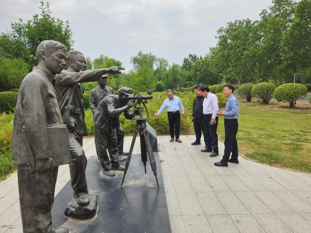 在乐天宇铜像前,王洪亮讲述了学校与南泥湾垦荒的历史渊源,我校老一辈科学家乐天宇率考察团深入南泥湾调研,提出垦荒建议,让“烂泥洼”蜕变为“陕北江南”,其“为国纾困”的担当精神深植学校血脉。他介绍,我校自南泥湾时期肇始,一代代科学家秉承艰苦奋斗、自强不息的“百农精神”,长期聚焦现代农业发展需求,始终将论文写在大地上,以科技创新服务国家战略。