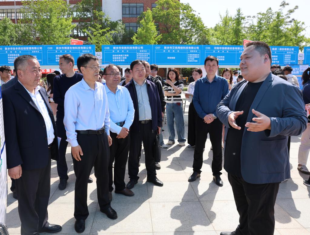 为拓宽毕业生就业渠道,扎实推进毕业生高质量就业,4月23日上午,我校“豫荐未来·青春起航”2025届农林生化类春季校园招聘会在学校启智广场举行。副校长王洪亮到现场指导工作,学生处、就业创业指导中心、各相关学院负责人及2025届毕业生参加。