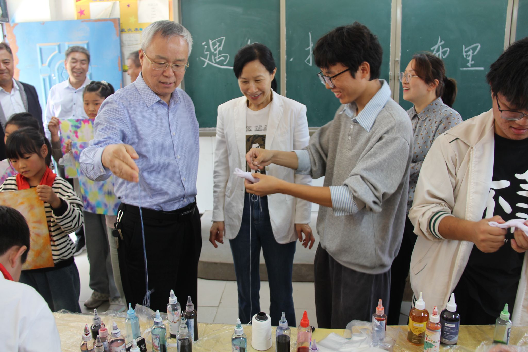 在旧黄陵村小学,宋亚伟实地了解教育帮扶举措落实情况。宋亚伟一行查看了由我校服装学院、数学科学学院组织的“遇见扎染 布里生花”美育体验活动以及“共赏数学文化,提升科学素养”数学文化进校园活动。驻村第一书记陈利汇报了近期帮扶工作的推进情况。