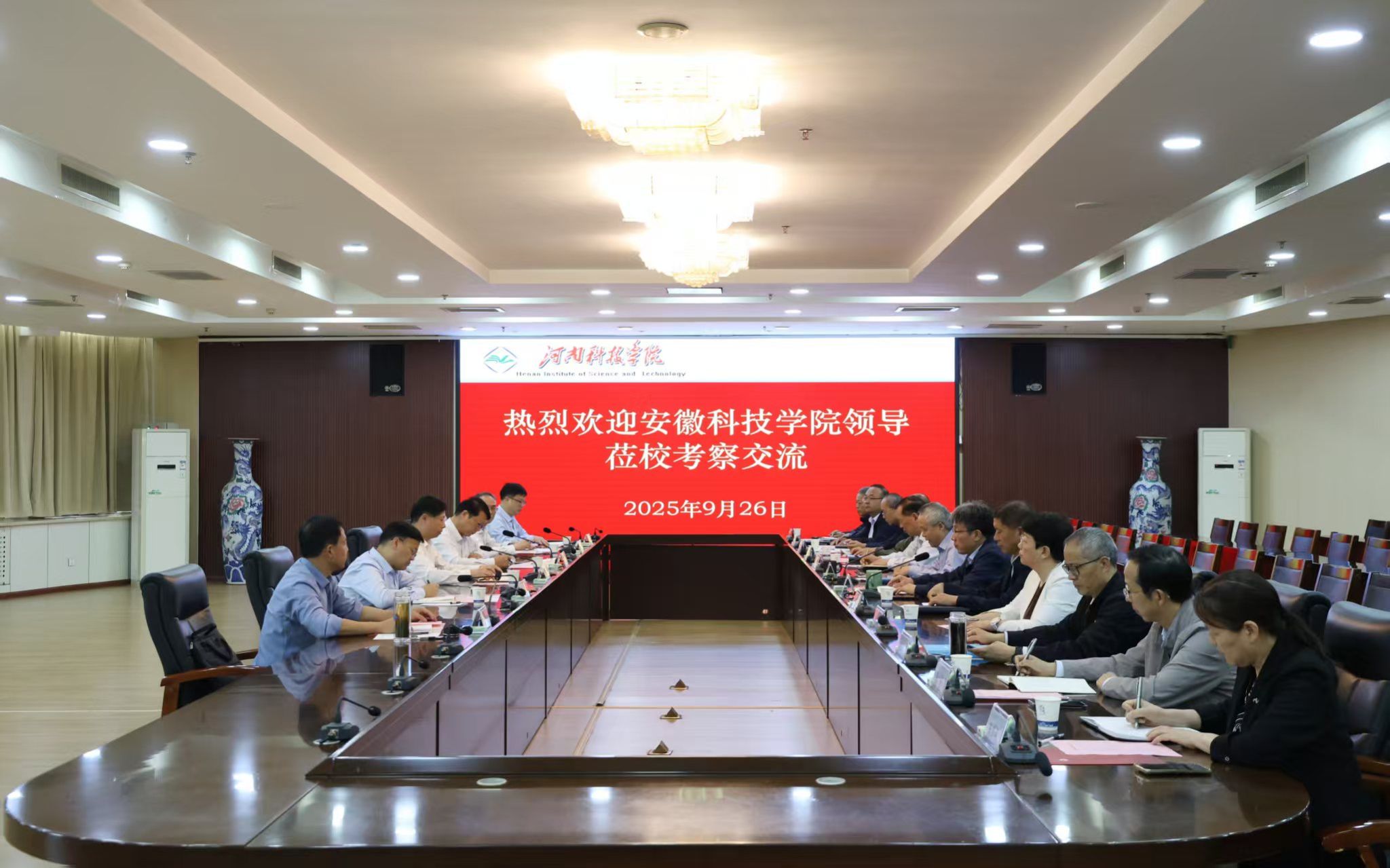 9月26日下午,安徽科技学院党委书记时伟、校长李升和一行莅临我校考察交流,座谈会在办公楼206会议室举行,校党委书记宋亚伟、校长阚云超、副校长乐玉忠出席会议,党委办公室、校长办公室、发展规划处、人事处、教务处、科技处、研究生处、审计处、成果转化与合作办公室等职能部门负责人参加会议。