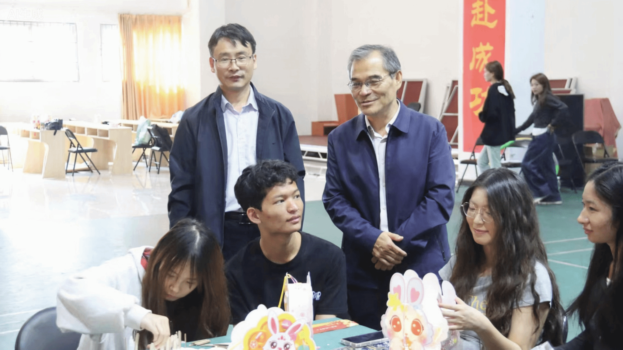 活动现场,王庆兵与同学们共话青春与成长,共同感受传统节日的独特魅力。大家兴致盎然地投入各项活动中。他们手握谜题驻足凝思,在猜出谜底后兴奋地前往领奖处核对答案,在趣味互动中加深对传统文化的理解;一盏盏由他们亲手制作的花灯,不仅承载着中秋佳节的祝福,更凝聚着劳动的喜悦;诗词飞花令区域书香浓厚,比赛以“月”“秋”等符合中秋主题的字为令,大家佳句频出,充分展现了扎实的诗词功底;套圈游戏和“一圈到底”接力赛活动充满了欢声笑语,参与者全神贯注,同伴们加油助威,这些互动游戏不仅考验手眼协调能力,更培养了团队协作精神;活动尾声,师生们围坐在一起,交流活动中的乐趣与感悟,分享各自家乡的中秋习俗。