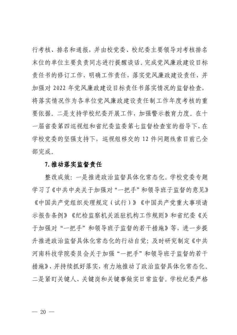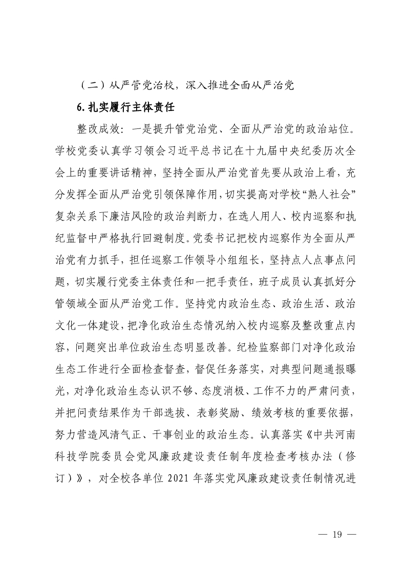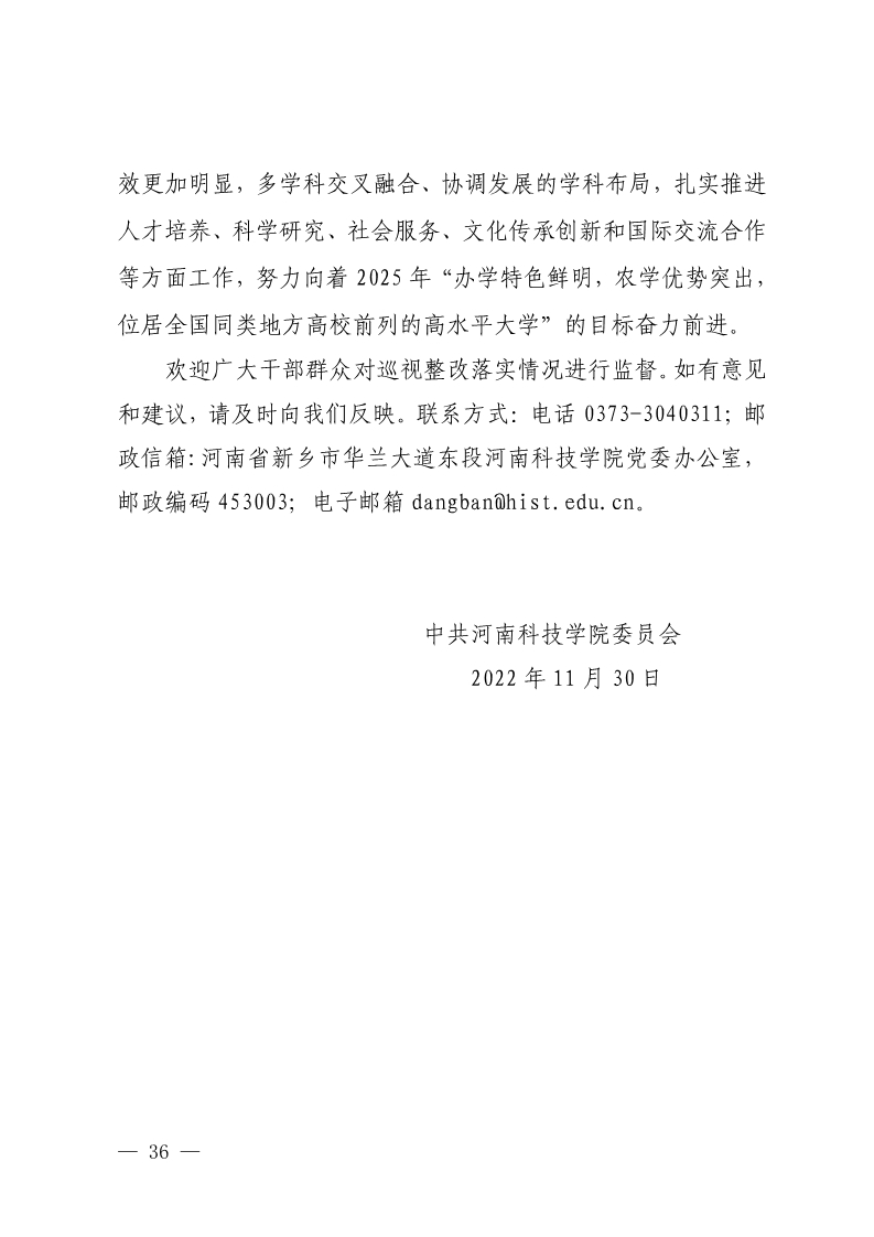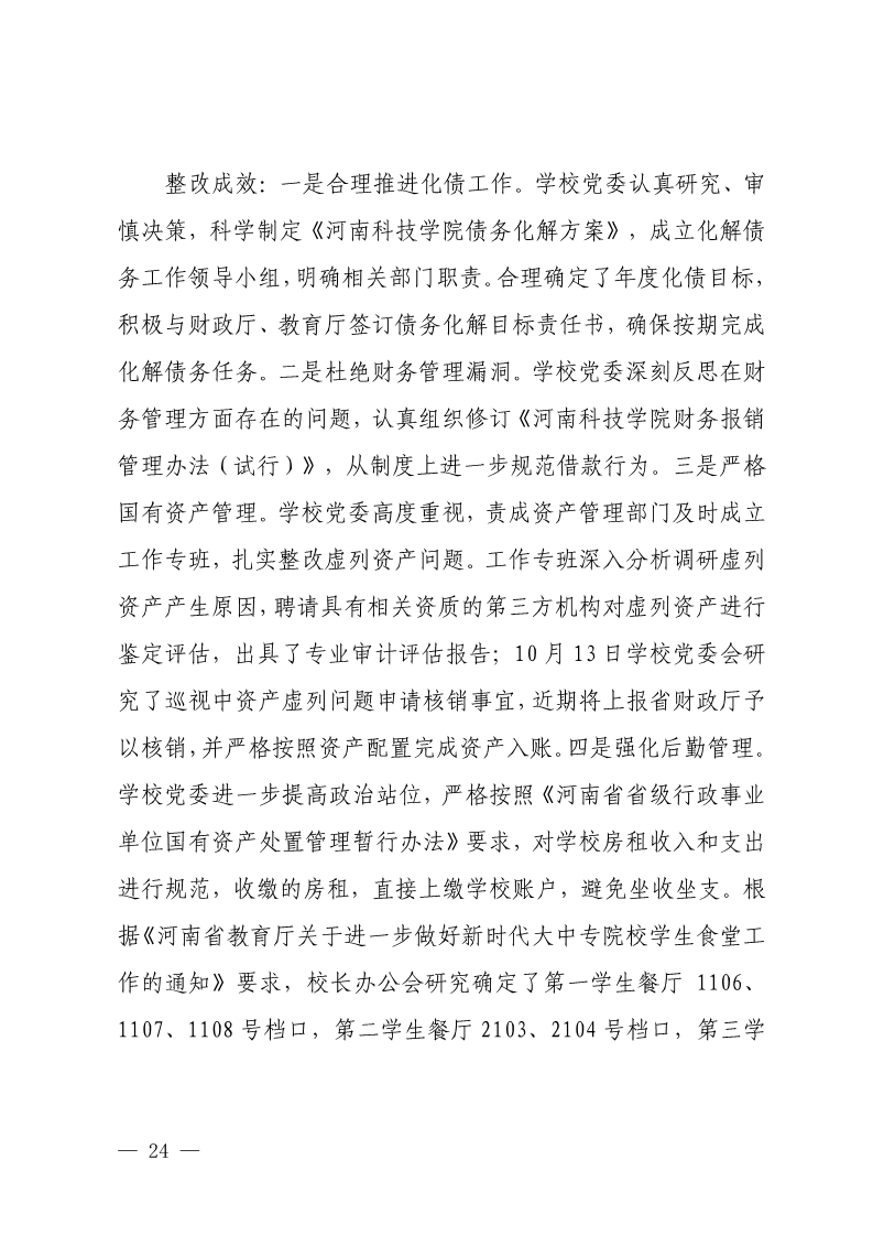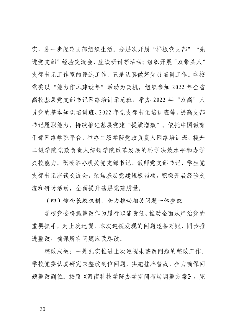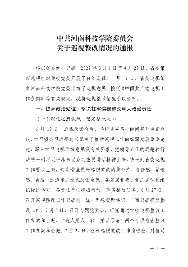 中共河南科技学院委员会关于巡视整改情况的通报