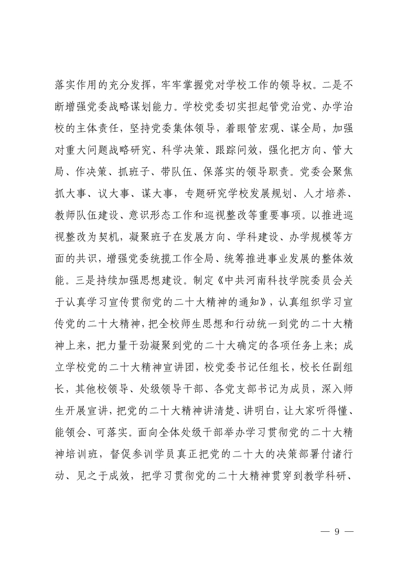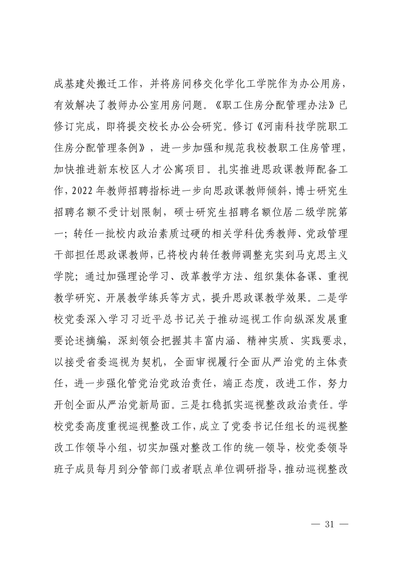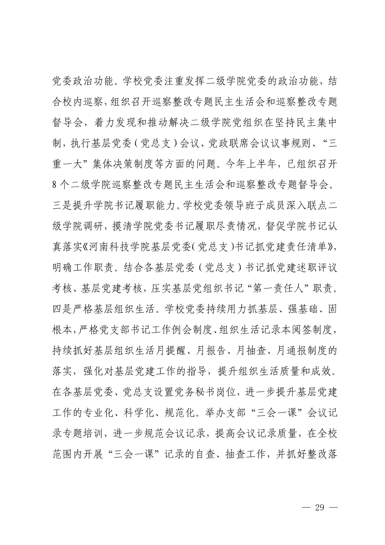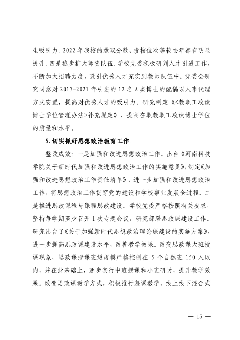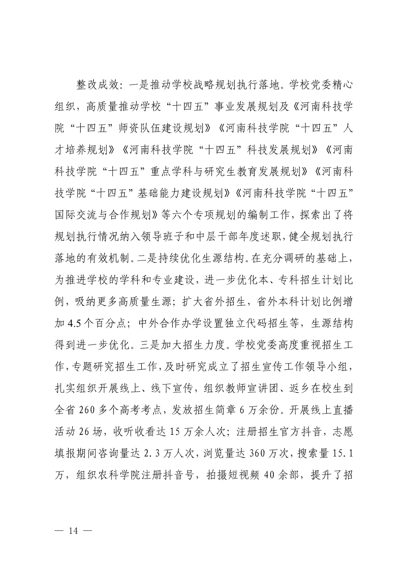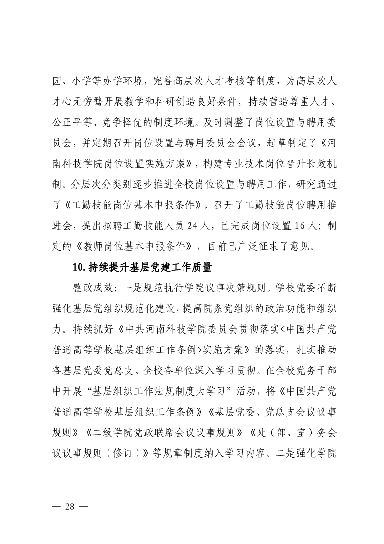 中共河南科技学院委员会关于巡视整改情况的通报