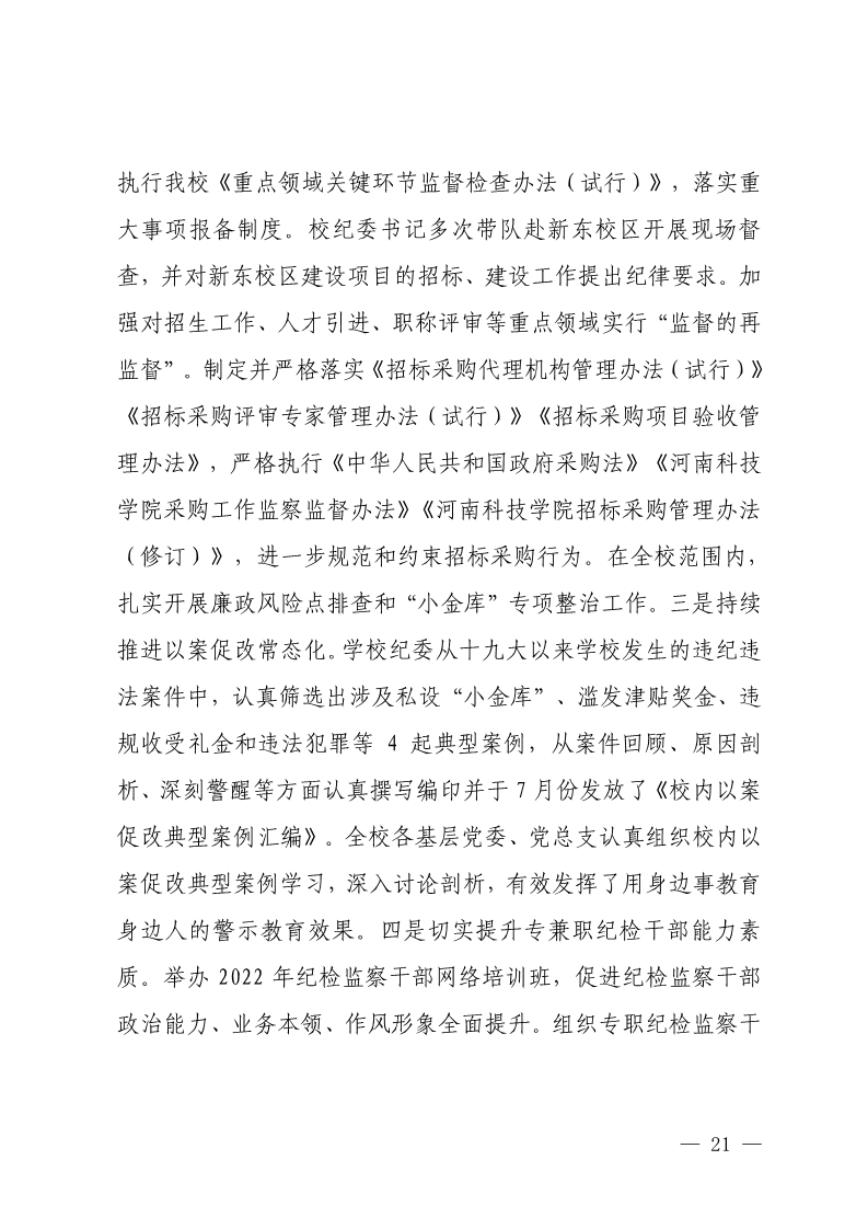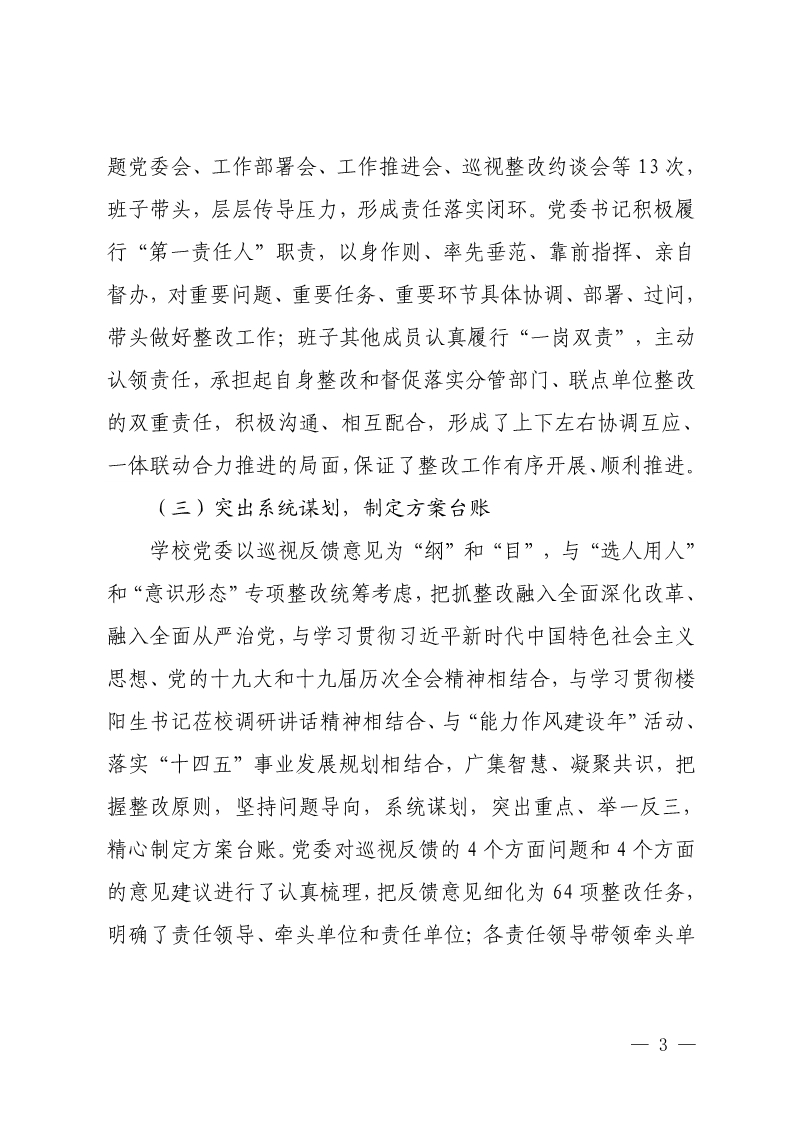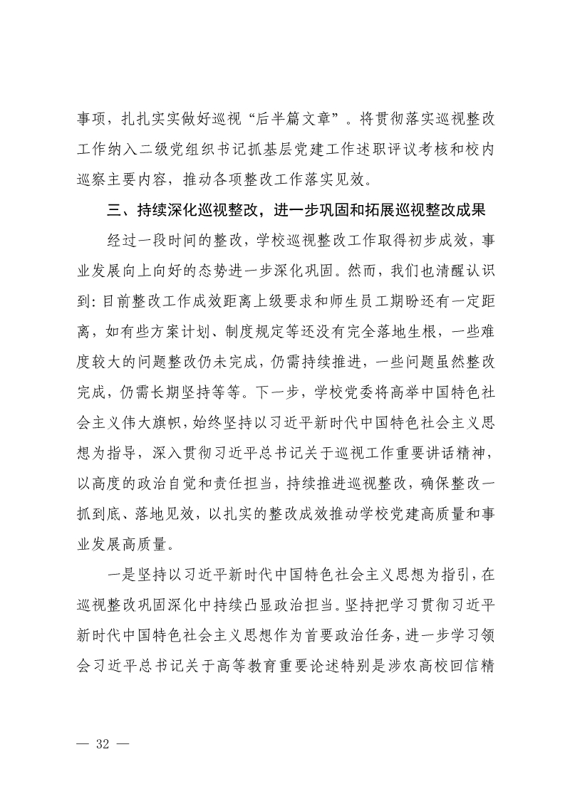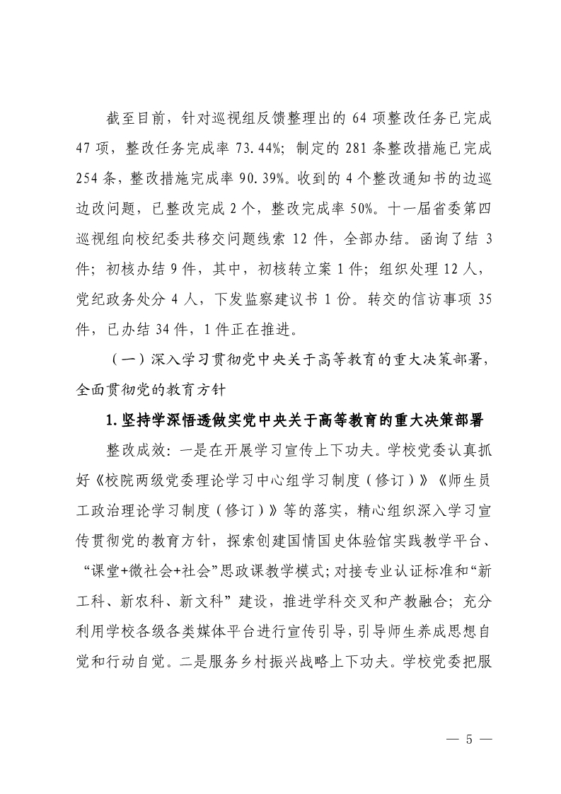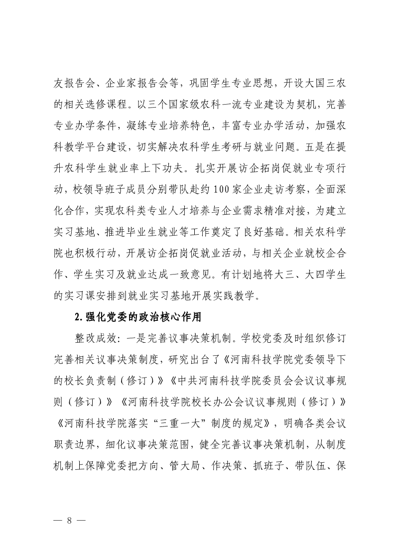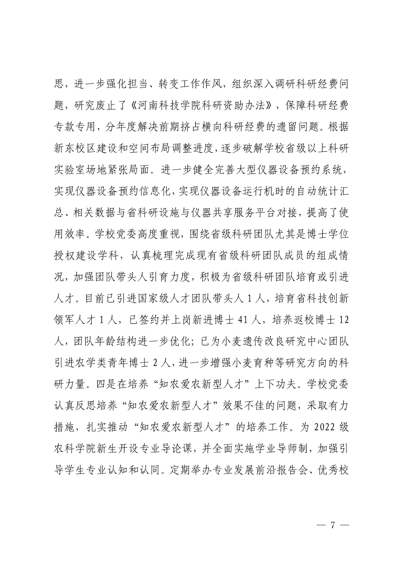 中共河南科技学院委员会关于巡视整改情况的通报