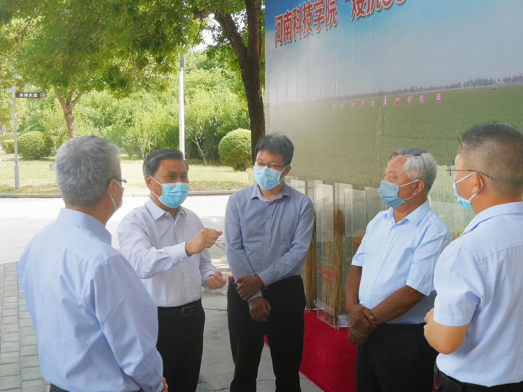 5月30日上午,副省长武国定在新乡市副市长武胜军,卫辉市市委副书记、市长王清洲,省政府办公厅副主任卢东林、农业农村厅副厅长王俊忠、科技厅副厅长夏培臣,河南农业大学教授、农业部小麦专家指导组副组长郭天财,市委办公室、市农业农村局、农机中心、科技局等相关单位负责人的陪同下,莅临我校调研小麦品种培育工作。