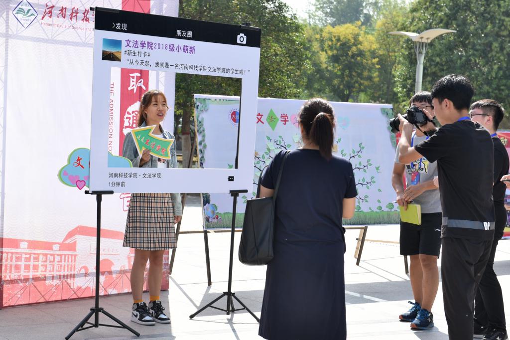 经济与管理学院设计了大型“录取通知书”合影墙,留下新生在大学的第一个“证件照”,定格大学第一天的美好记忆;食品学院设计了“心愿箱”,新生们写下对大学生活的期望,激励自己不要辜负未来四年的美好时光;动物科技学院、资源与环境学院等设立了“专业咨询区“,安排系主任、教授等,就专业设置、学科建设、就业方向等内容向新生解疑释惑;信息工程学院设立了新生签名墙,推出了“共享学长”服务,18名高颜值学长耐心地帮助新生解决各类问题;化学化工学院、艺术学院等持续播放学院宣传片的同时,设置了”开学第一照“,用镜头记录下新生入校的美好时刻;园艺园林学院一张”以梦为马,不负韶华“的创意火车票,让新生感受入校如回家般温暖,拉近了与新生的距离;服装学院将院徽和微信二维码设计成钥匙扣,赠送给新生,使新生增强对学院的认同感和归属感;文法学院、外国语学院等颇具创意的“朋友圈”展板,表达了对新生的热烈欢迎……一个个别出心裁的活动蕴藏着无限的感动,新颖独特的迎新方式带给新生们难忘的大学第一天。