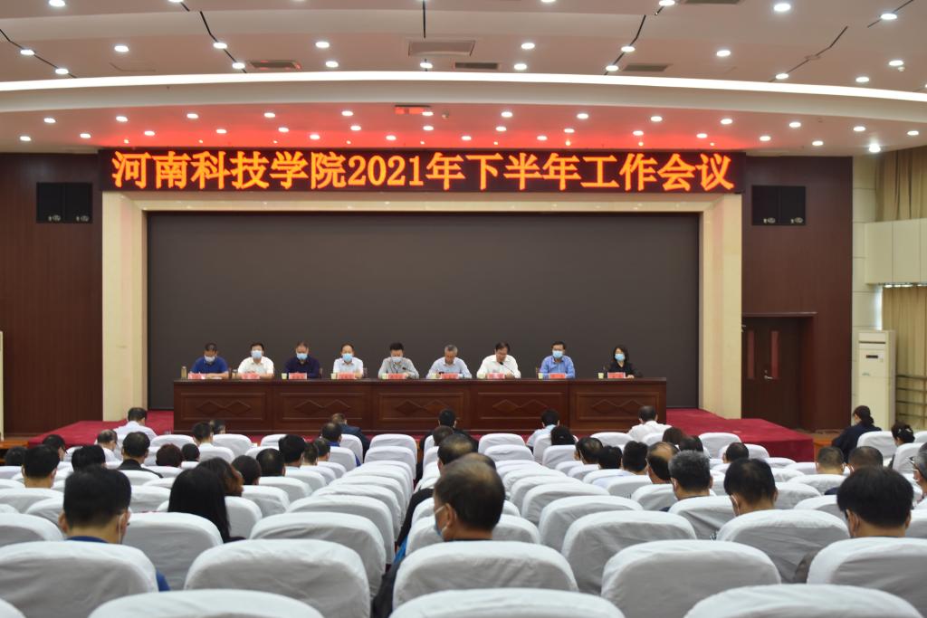 副校长冯启高代表校党委、校行政从党的建设、精神文明建设与思想政治工作、综合改革、人才培养、师资队伍、科技创新、学科建设、研究生教育、学团工作、对外交流、社会服务、后勤保障、防汛救灾、疫情防控等十一个方面总结回顾了上学期和暑假工作,对2021年下半年学校工作进行了安排部署。他指出,下半年要重点抓好九个方面的工作: